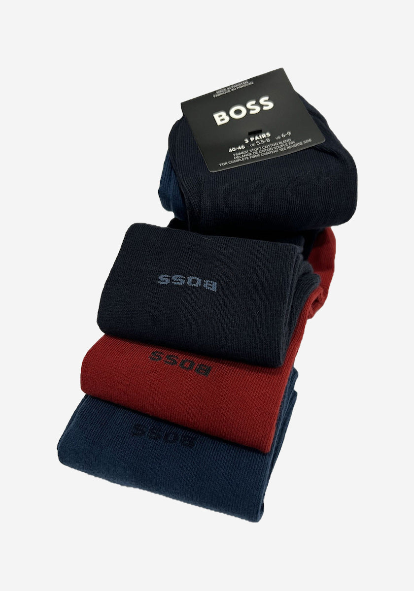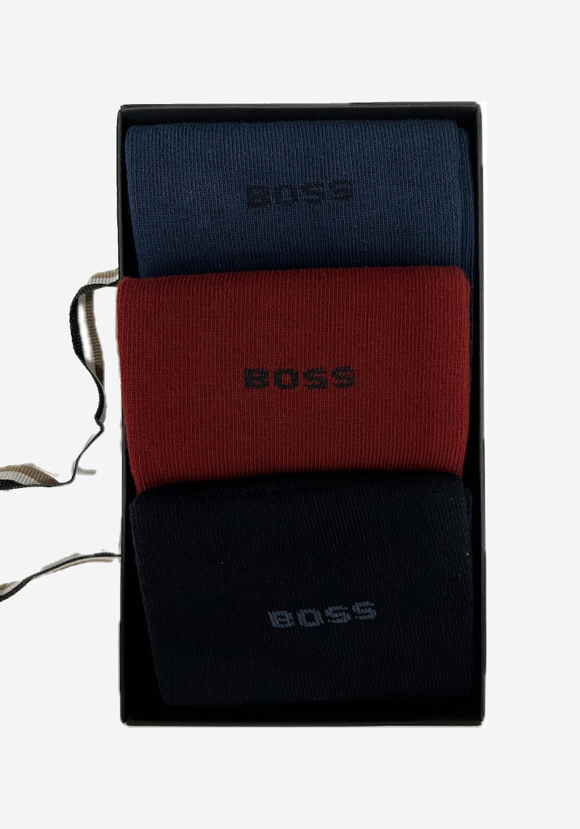 BOSS Mens Socks 3 Pack Gift Box - Red / Dark Blue / Blue