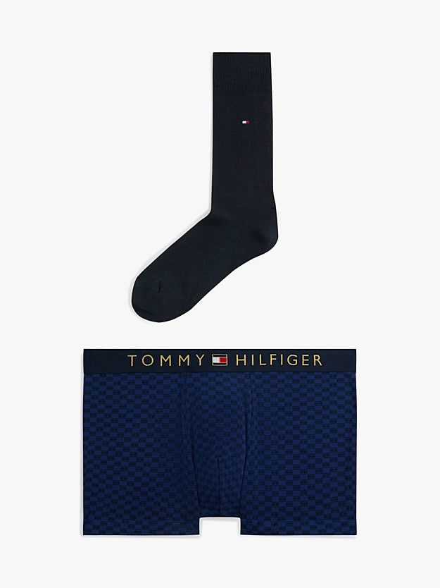 Tommy Hilfiger Mens Original Trunks & Socks set - Navy Tonal Flag/Des Sky