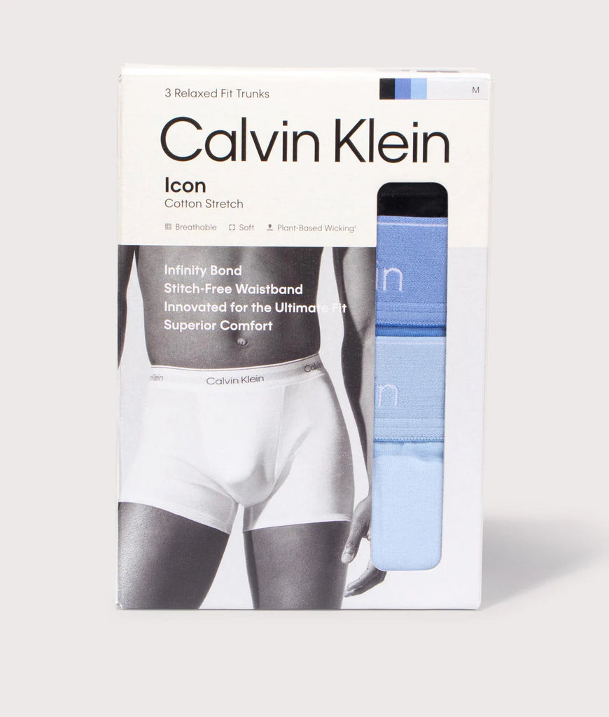 Calvin Klein Men's 3 Pack Icon Cotton Stretch Trunks - Black/Mid Blue/Light Blue
