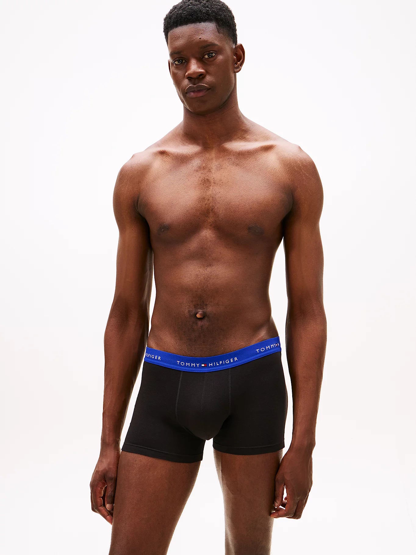 Tommy Hilfiger Men's 3-Pack Signature Cotton Essentials Trunks - Black Multicoloured Waistbands