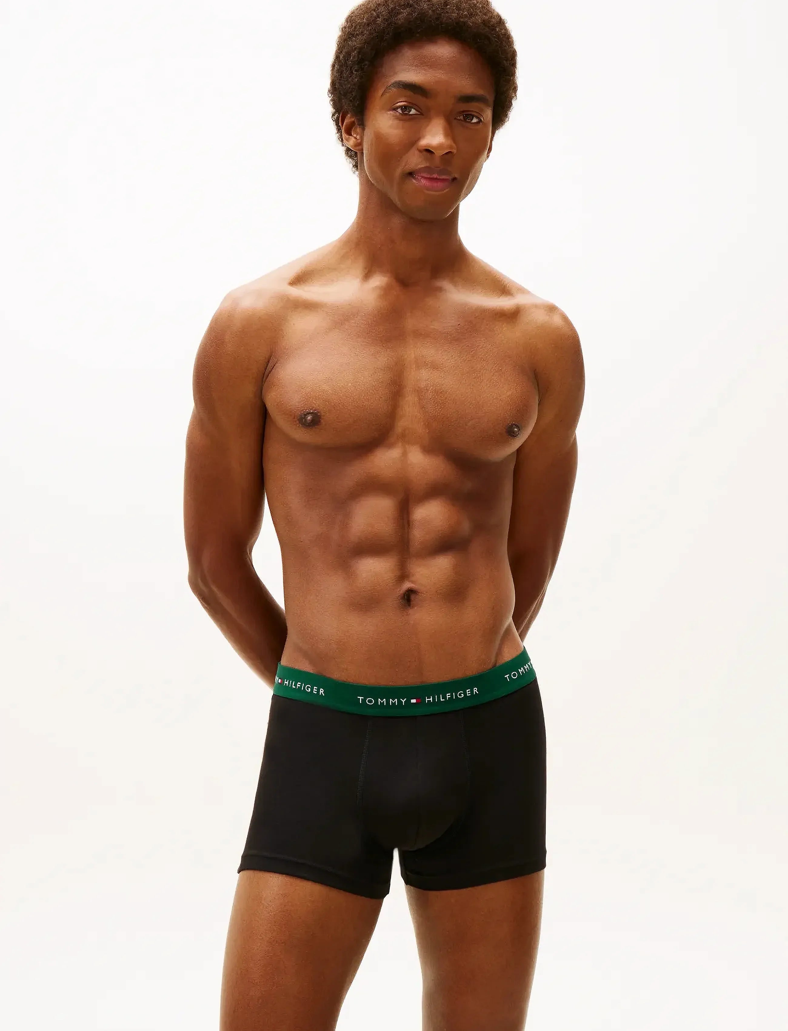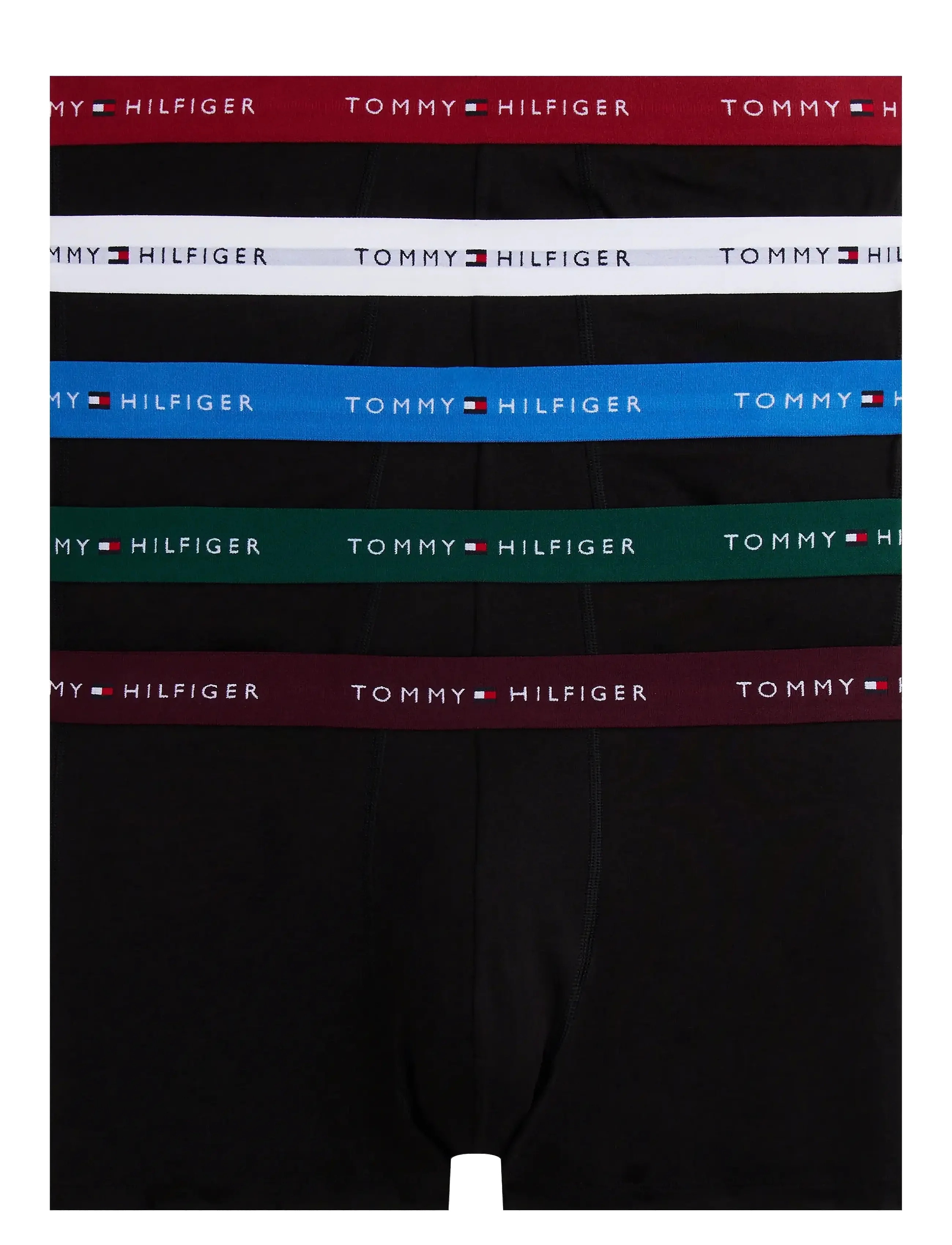 Tommy Hilfiger Signature Cotton Essential Trunk 5 Pack - Black-Coloured Waistbands