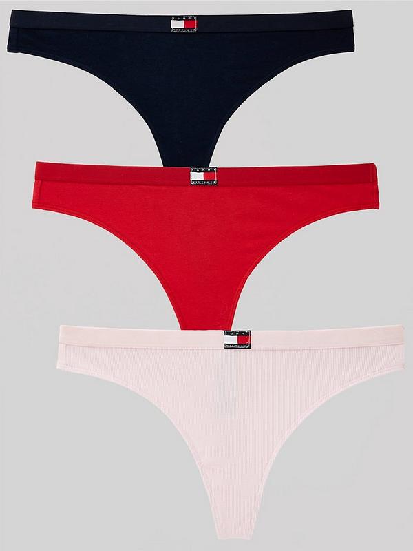 Tommy Hilfiger Women's 3 Pack Thongs  - Primary Red / Dark Blue / Pink
