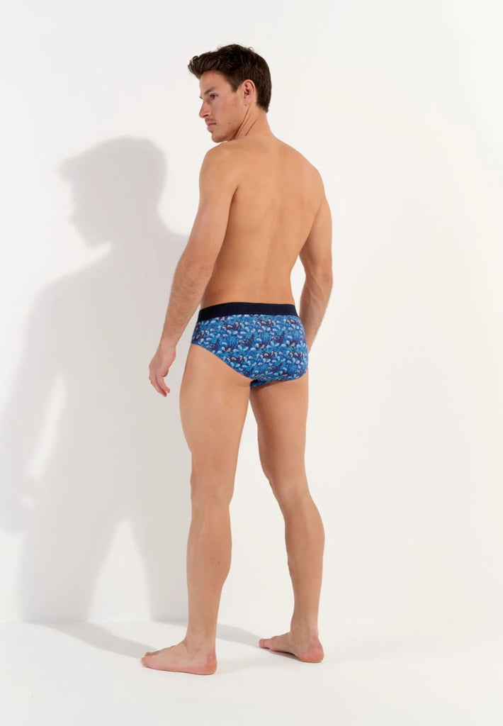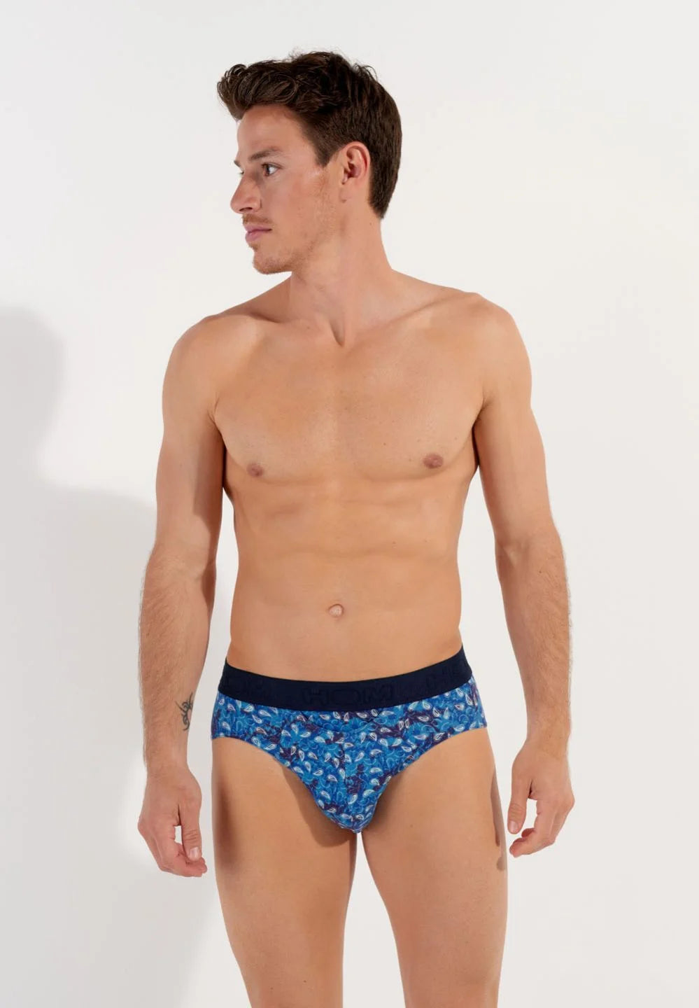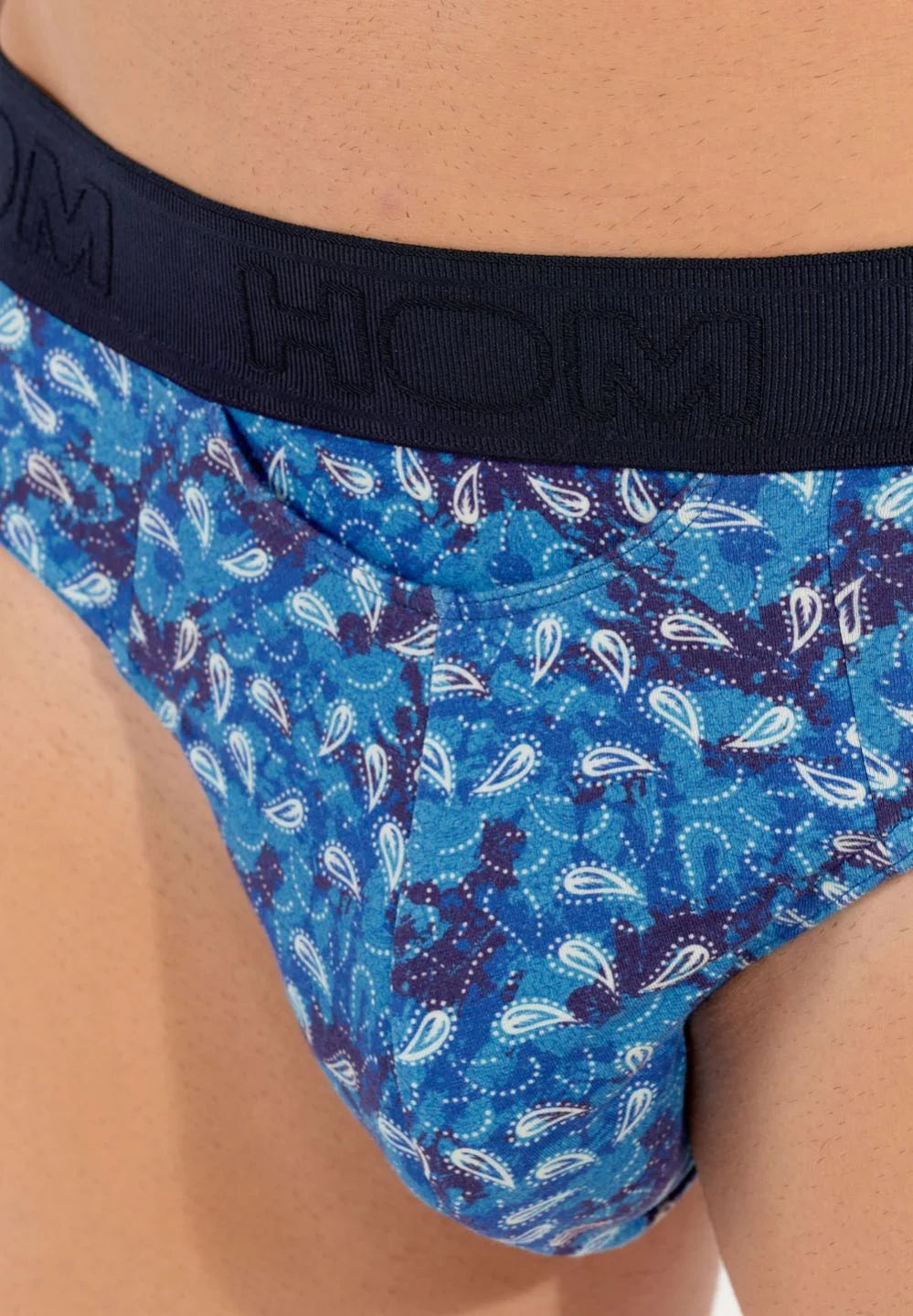 The briefs feature HOM’s patented HO1 Horizontal Opening, a signature design offering both convenience and support. A subtle white pattern set against the blue background brings understated elegance, while the wide elastic waistband provides a secure, comfortable fit all day long.