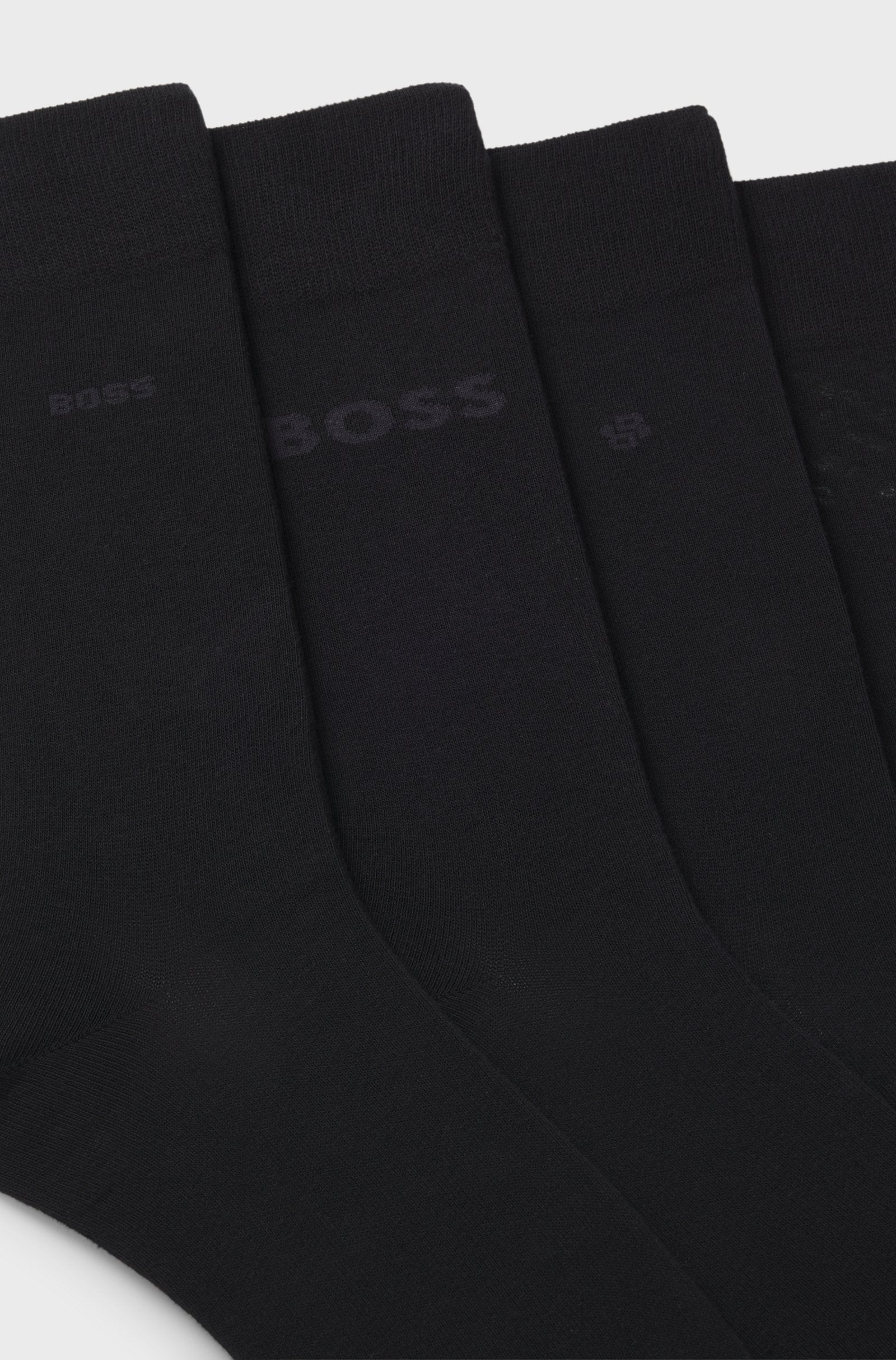 Boxed for effortless gifting, this four-pack of BOSS Menswear socks offers everyday comfort with a regular length design. Crafted from a cotton-rich blend, each pair features unique BOSS branding for a stylish touch. Made using at least 60% better raw materials, including cotton sourced from regenerative agriculture—an approach that helps restore natural ecosystems, support biodiversity, and improve soil and water health.