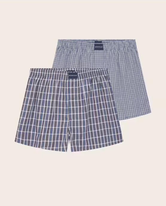 Tom Tailor Men's Woven Boxer Shorts 2 Pack - Dark Blue Check