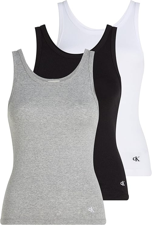 Calvin Klein Women's 3 Pack Scoop Neck Cotton Tank Tops- Black/White/Grey